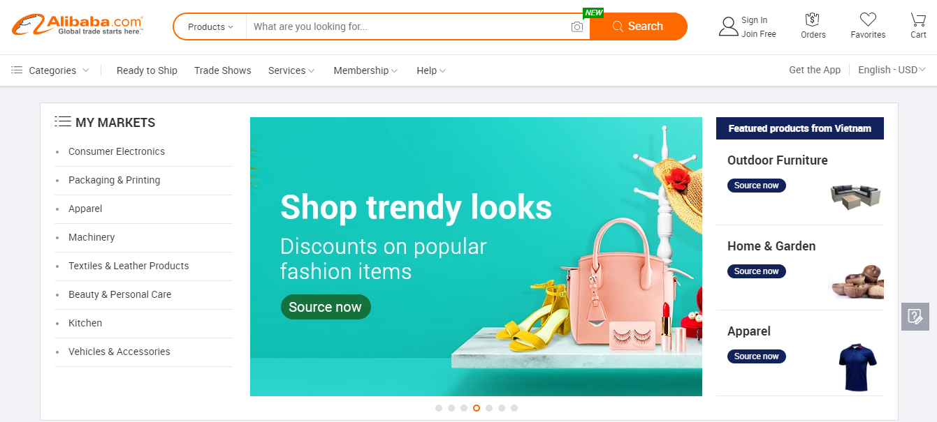 Alibaba – Esta plataforma digital te permite hacer negocios B2B. B2B o Business to Business es un término utilizado para referirse a negocios que le venden a otros negocios. Esta plataforma te conecta directamente con fabricantes que te ofrecerán el producto que buscas al por mayor. Una de las desventajas de esta página es que, como es al por mayor, muchas veces la cantidad mínima de compra es de 100 artículos del mismo producto.